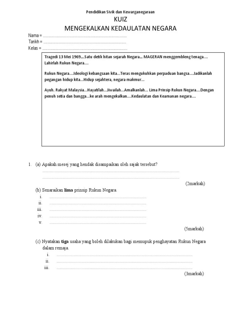 B) menghormati budaya, adat resam dan . Contoh soalan kuiz rukun negara ani jeden cute766. 1) berikut merupakan objektif kelab rukun negara di sekolah kecuali: Keahlian 31semua murid sekolah rendah dan menengah adalah digalakkan menjadi ahli . Apakah model kereta pertama malaysia?